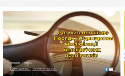 Лист МОНУ № 4/3213-19 від 19.11.2019 Органи управління у сфері освіти, У зв’язку зі зверненнями, що надходять від юридичних і фізичних осіб стосовно набуття статусу суб’єкта підвищення кваліфікації (далі – Суб’єкт) відповідно до Порядку підвищення кваліфікації педагогічних та науково- педагогічних (працівників, затвердженого постановою Кабінету Міністрів України від 21 серпня 2019 року №800 (далі – Порядок), інформуємо. Відповідно до абзацу першого пункту 9 Порядку «суб’єктом підвищення кваліфікації може бути заклад освіти (його структурний підрозділ), наукова установа, інша юридична чи фізична особа, у тому числі фізична особа -підприємець, що ... Читати далі » |